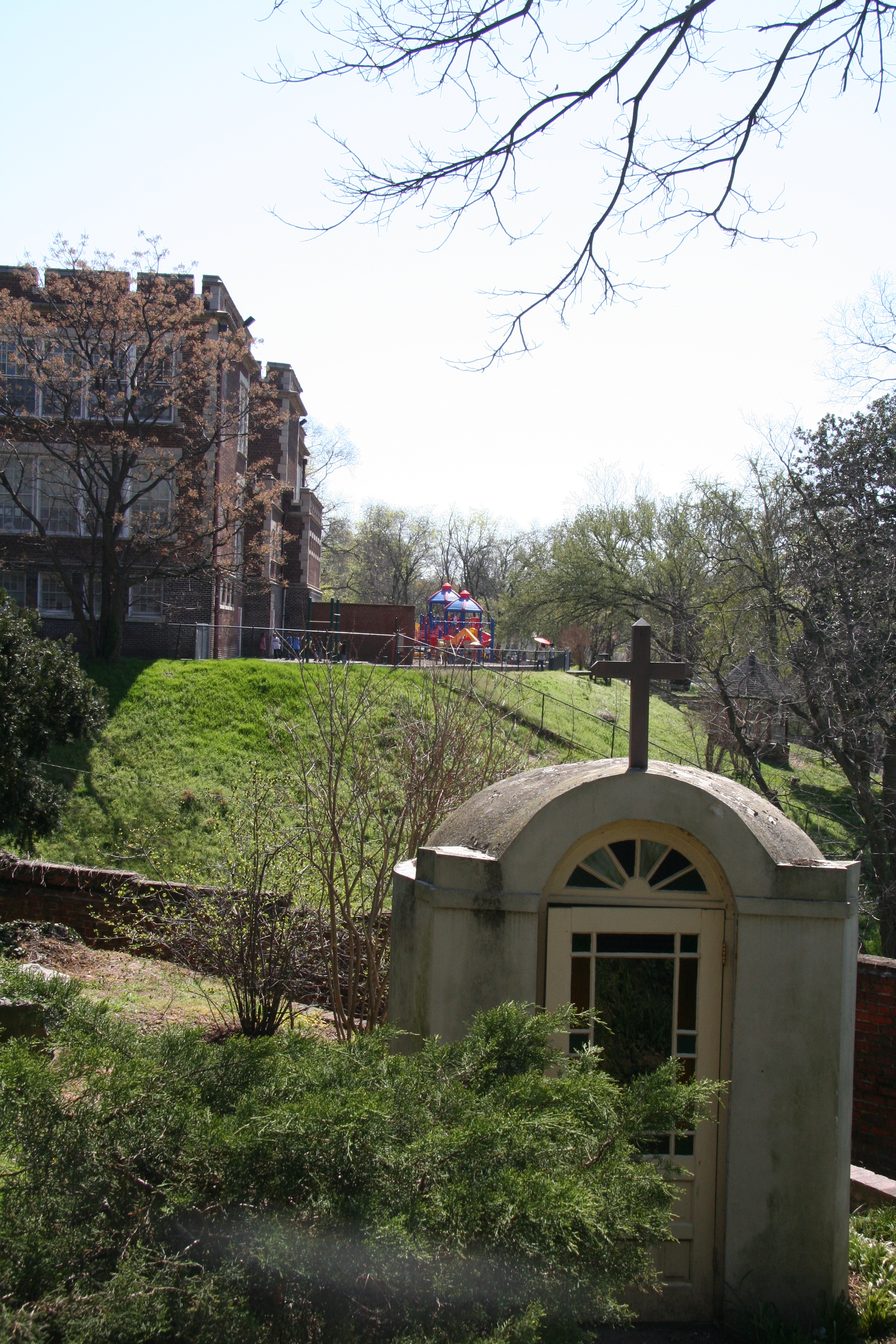 the sound of children playing at the school next door