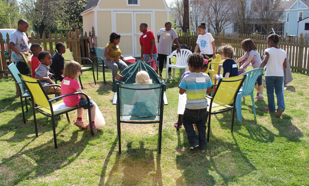 After sitting still for so long, the kids were ready to go on an Egg Hunt!